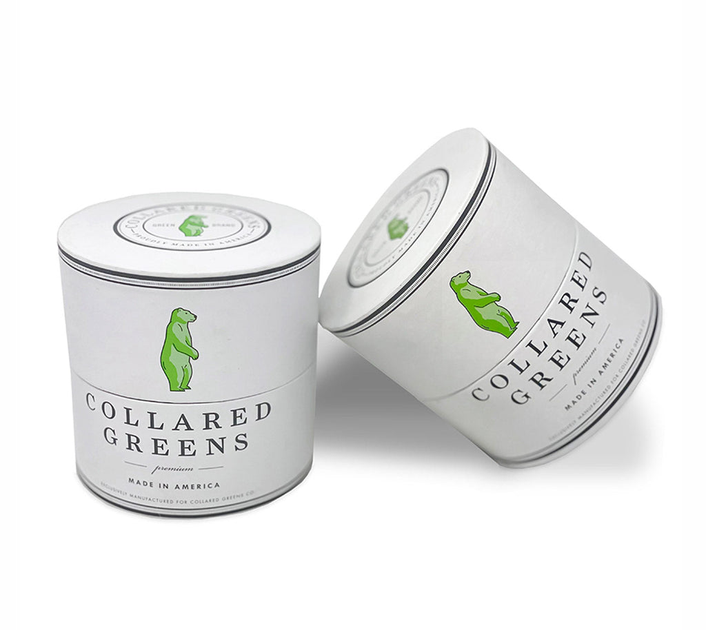 - Collared Greens woven label on back of tie